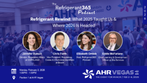 Refrigerant365, the leading podcast covering refrigerant news and insights in the HVACR industry, will record a live episode at the 2026 AHR Expo in Las Vegas. The session, titled “Refrigerant Rewind: What 2025 Taught Us & Where 2026 Is Headed,” will take place on Monday, February 2, 2026, from 1:00 PM to 1:50 PM in Pavilion 1.