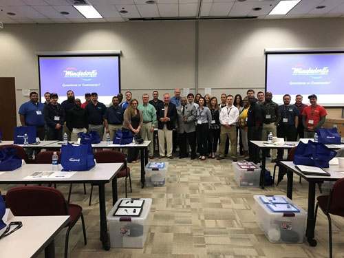 Mingledorff’s newest employes at New Hire Orientation Day pose around Bud Mingledorff and David Kesterton.