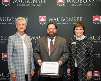 Profession Joseph Kloke of Waubonsee Community College receives CMHE certification.