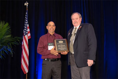 Tony DeSantis, left, receives HVAC Instructor of the Year award from PHCC President Ken Nielsen.