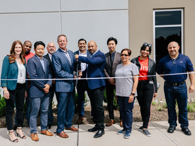 Fujitsu staff cut the ribbon to officially open the