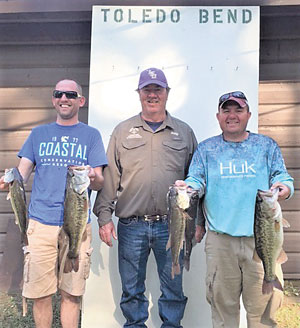 Robert Giles, Bobby Thomas of Thomas Supply and Mike Ingram with the winning stringer.