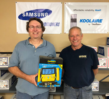 Mark Landry and Danny Millet with the Fieldpiece Wireless Manifold.