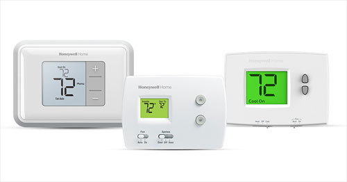 From left to right, Honeywell Home T3 PRO, Honeywell Home PRO 3000 and Honeywell Home E1 PRO.