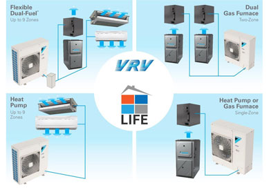 Dual-Fuel is achieveable only when VRV indoor units and gas furnace and A-Coil are connected to one VRV LIFETM unit.